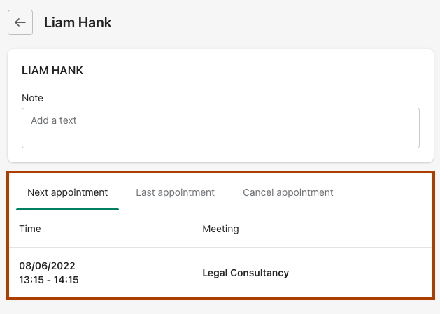 Click on any customer and you can view all the appointments, including the Next, the Last, and Canceled.