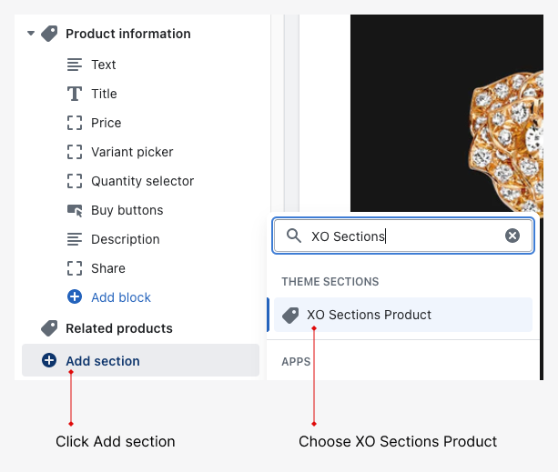 - Add XO Product Sections