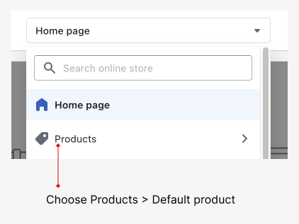 Online Store>Themes, then customize your theme - Choose Products > Default product