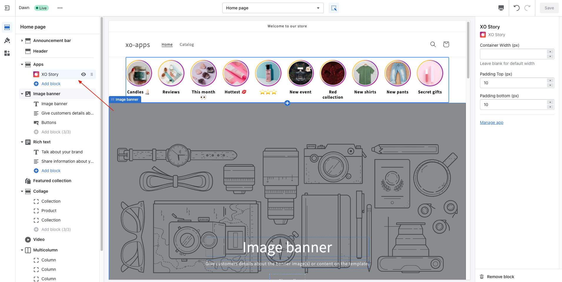 Watch this tutorial on how to use the XO Story feeds app block and show your stories on the store in a few simple steps.