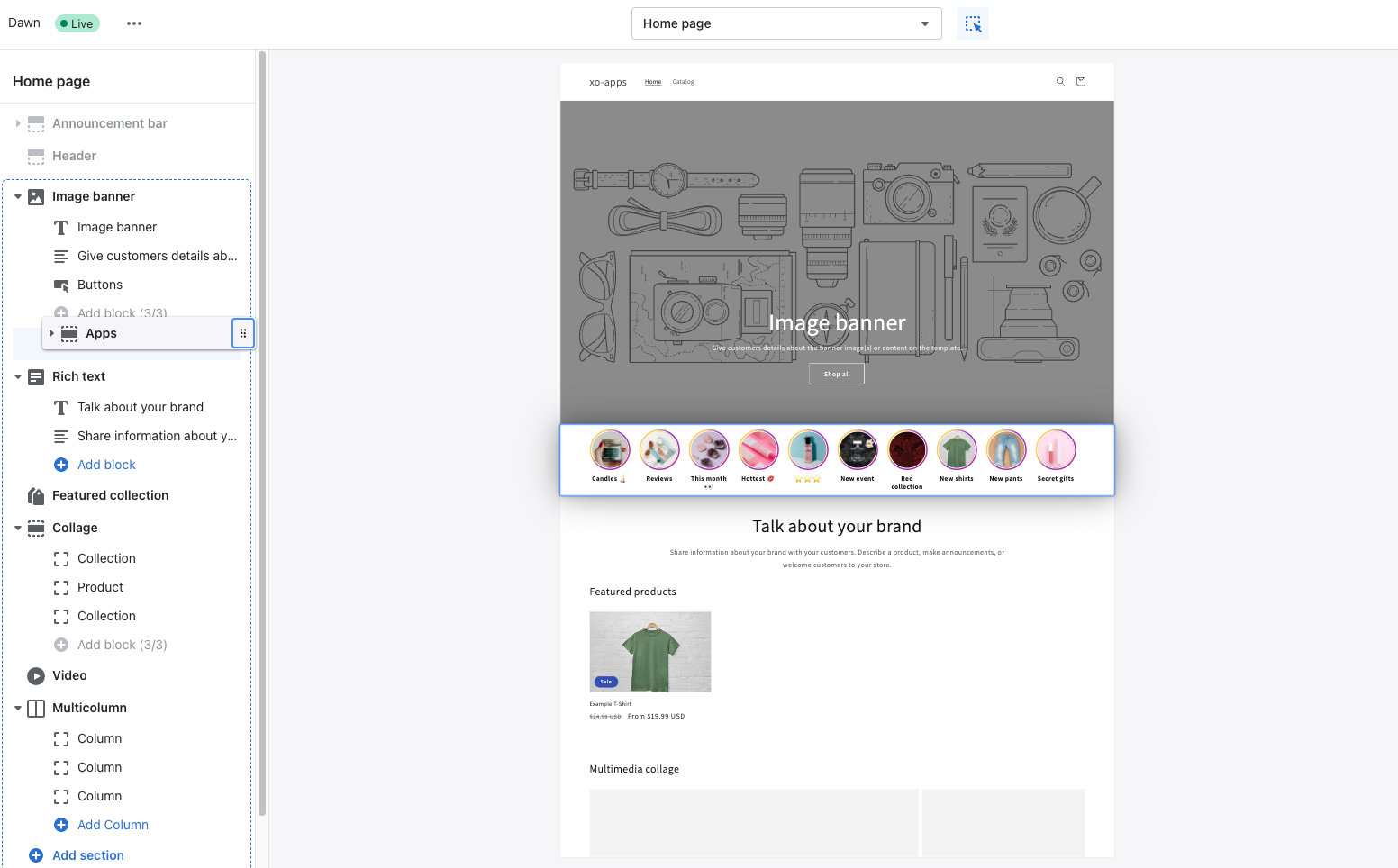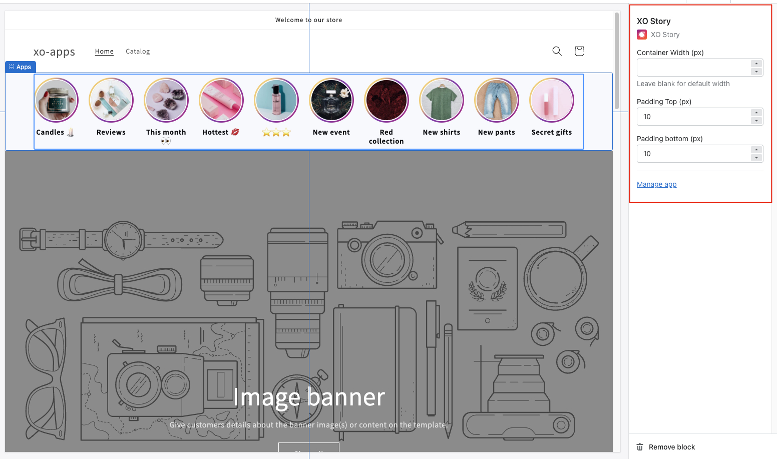 XO Story feeds provides scripts to enable app blocks and app embed blocks that are supported in all Shopify themes, so you can show your stories on any page of the store’s theme.